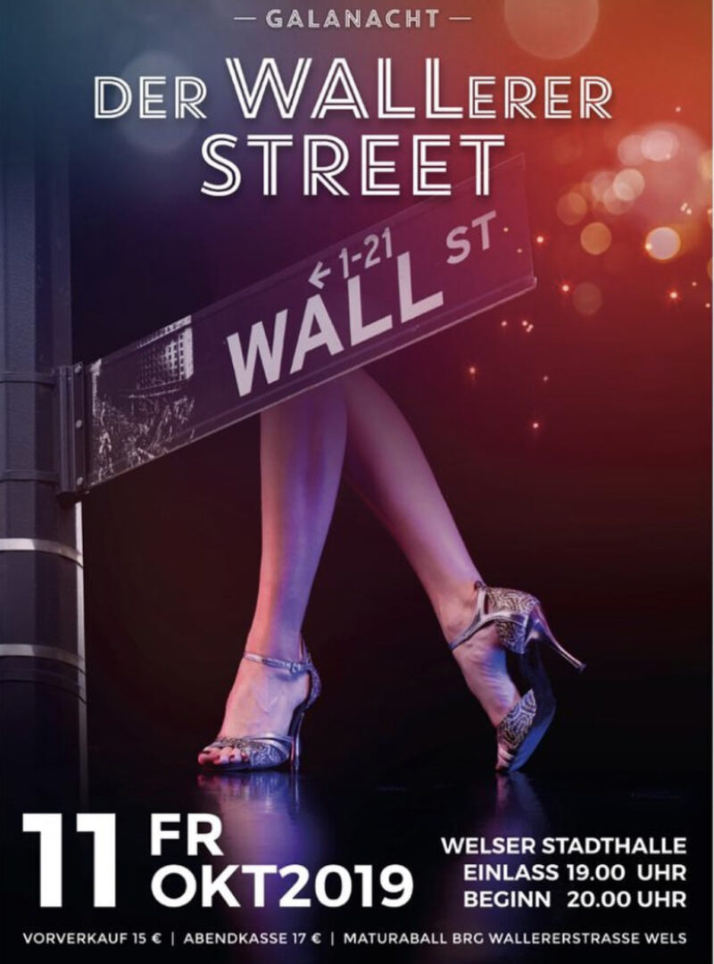 Am 11. Oktober 2019 war es soweit. Die 32 MaturantInnen des BRG Wels Wallerer durften ihren Maturaball unter dem Motto „WAllerer STREET“ in der Stadthalle Wels abhalten. Sie präsentierten den mehreren hunderten Gästen ihren perfektionierten und lang vorbereiteten Auftritt. Ergänzend gab es eine erstaunliche Turnchoreografie der 8. S, indem sie die mit der Zeit angelernten Turnfähigkeiten aufführten.