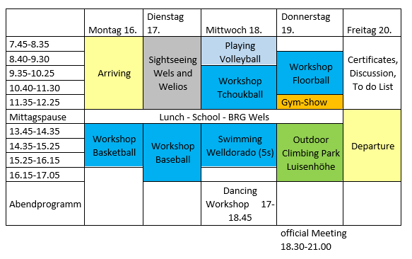 In der Woche vom Mo 16.4. – Fr 20.4.2018 sind wieder Gäste aus Finnland, Lettland, Tschechien und Polen bei uns in Wels. Im Zuge des EU-Projektes „Improving standards in teaching school sport to foster physical, cognitive and social development in pupil“ stehen verschiedenste Aktivitäten für SchülerInnen und LehrerInnen am Programm:
