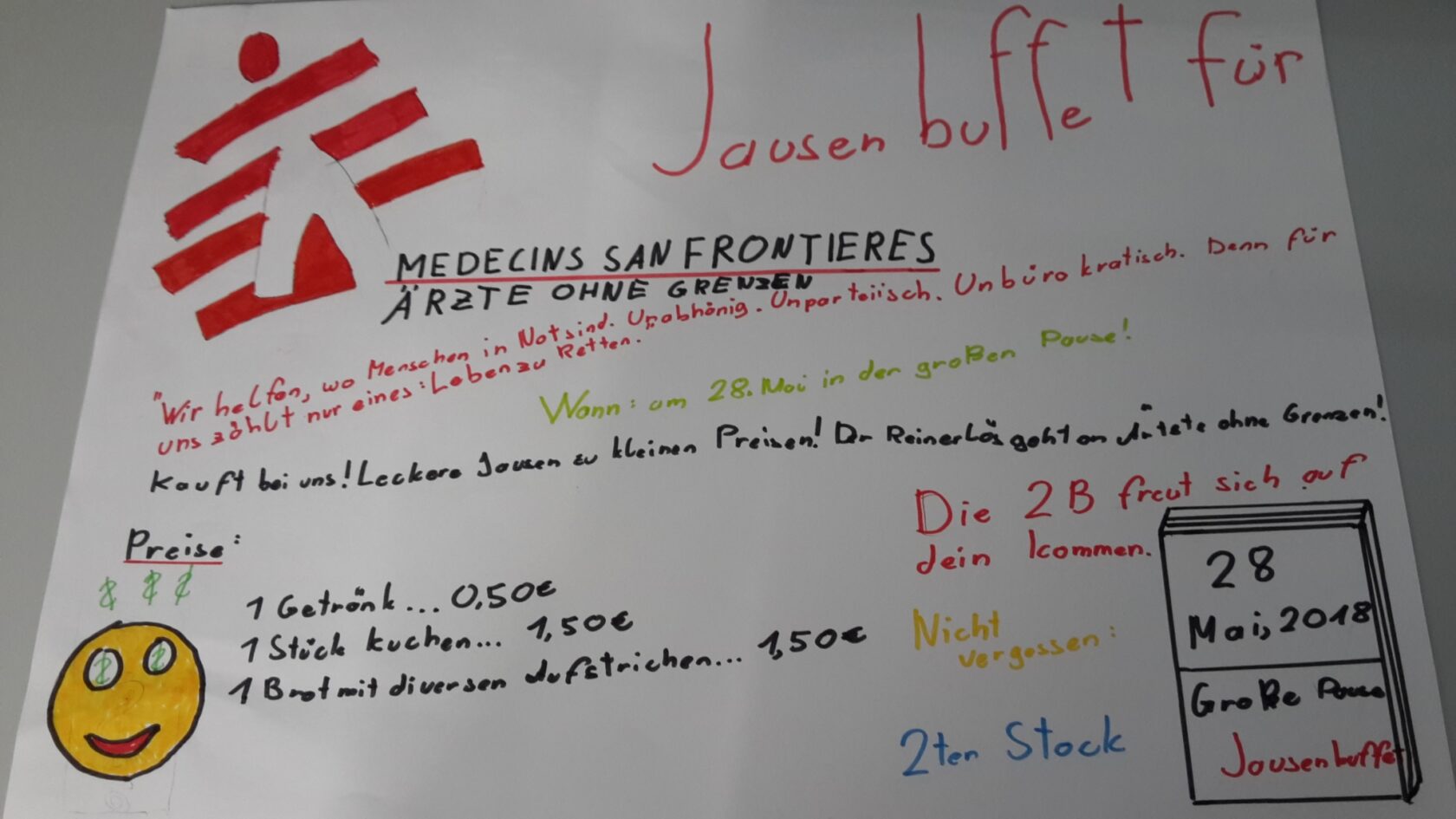 Die 2B Klasse hat am Montag, dem 28. Mai 2018 zugunsten der Organisation „Ärzte ohne Grenzen“ ein Jausenbuffet organisiert.