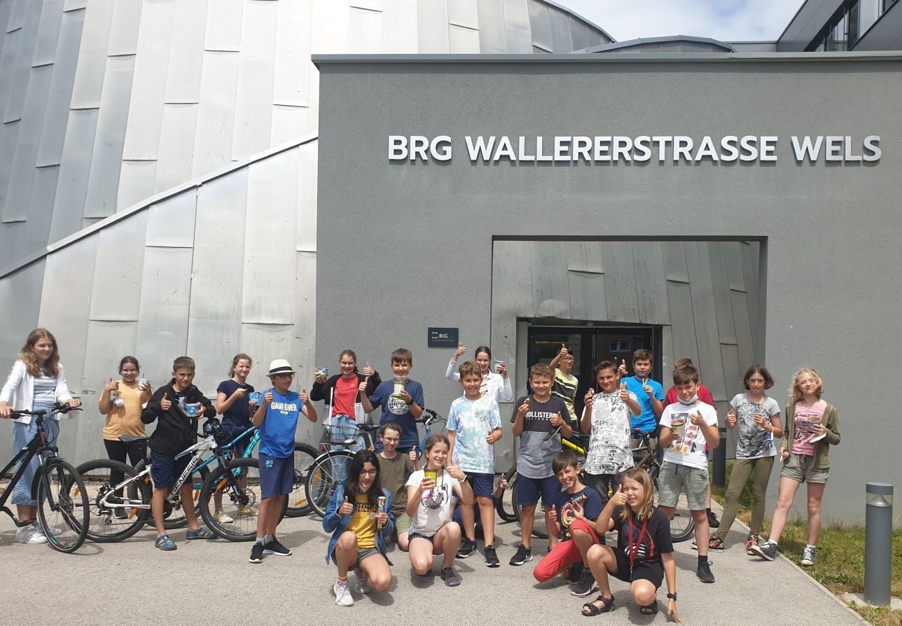 Sorgfältigkeit und Gewissenhaftigkeit beim Erledigen von Hausübungen stand in der 2C schon immer an der Tagesordnung. Besonders motiviert und voller Elan wurde im Juni jedoch der vom Klimabündnis OÖ ausgeschriebenen Hausaufgabe „Radeln als HÜ“ nachgegangen. Im Zeitraum vom 1. -20. Juni radelten die 24 SchülerInnen inklusive ihrer Klassenvorständin, Prof. Fath, täglich um die Wette. Der Fleiß (und Schweiß angesichts der hitzigen Temperaturen ) lohnte sich – die 2C durfte sich über den Gewinn des Hauptpreises, einem Eisgutschein im Wert von EUR 100,00 freuen!