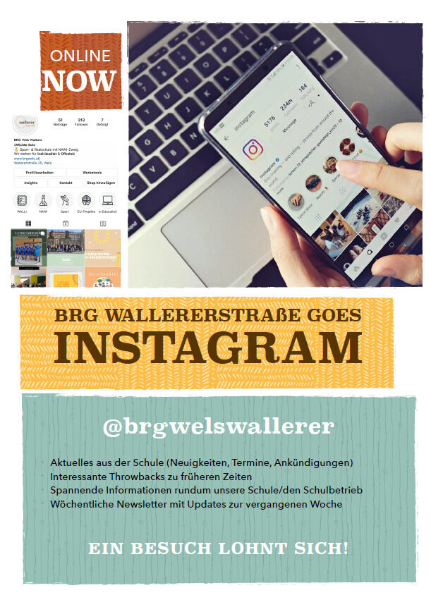Für vielseitige Einblicke in unseren Schulalltag und unsere Schule bieten sich unsere Social Media Kanäle an. Diese gewähren einen Blick hinter die Kulissen und informieren über Aktuelles, außerdem gibt es spannende Rückblicke zu früheren Zeiten, generell wichtige Infos rundum den Schulalltag und wöchentliche Newsletter mit Updates zur vergangenen Woche. Ein Besuch lohnt sich.
