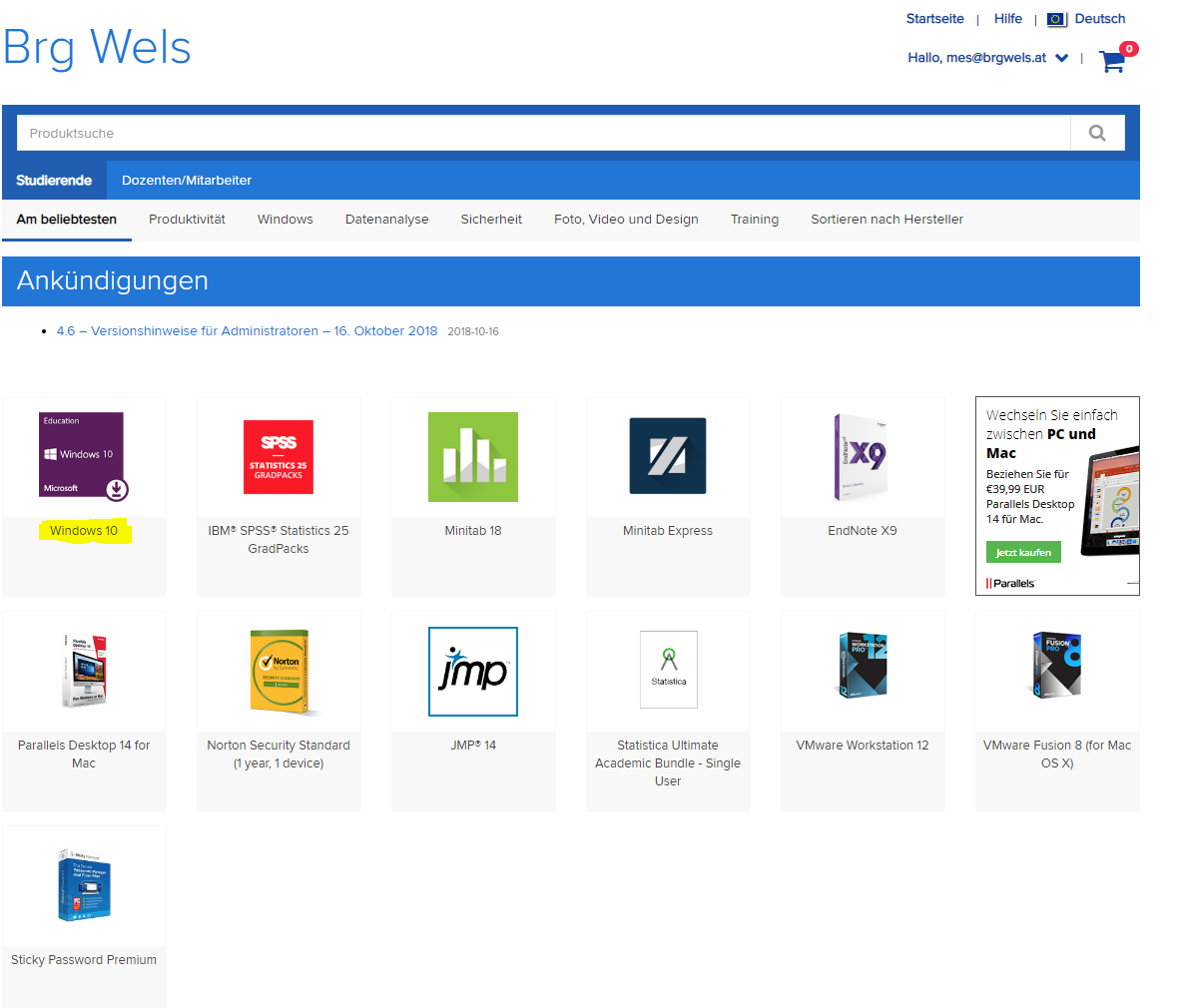 Die SchülerInnen an unserer Bildungseinrichtung können gratis folgende Programme (immer die neuste Version) beziehen:
