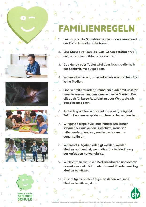 Eine technische Regulierung von Nutzungszeiten technischer Geräte (zB WLAN), aber auch Contentfiltern ist zu empfehlen (Router im Heimnetz haben solche Möglichkeiten).